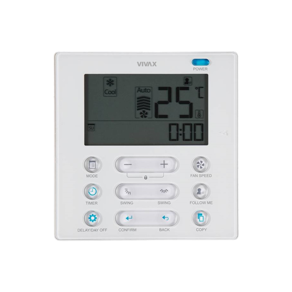 A VIVAX ACP-24CC70AERIs R32 kazettás légkondicionáló egy mono split rendszer, névleges hűtési/fűtési teljesítménye: 7,03 kW/7,62 kW. A speciális 3D inverter technológia biztosítja a legjobb teljesítményt, miközben jelentős energiamegtakarítást tesz lehetővé. Az egység vízszintes és automatikus függőleges kipufogó funkcióval rendelkezik, amely egyenletesebb és kényelmesebb légáramlást biztosít. A porszűrő segít megállítani a porrészecskéket a készülékben és javítja a levegő minőségét. Az ECO mód további 60%-kal takarít meg energiát. Az energiatakarékos funkció segít abban, hogy a készülék elegendő hűtési teljesítményt biztosítson anélkül, hogy teljes kapacitással kellene működnie. Ez a modell szivattyúval is rendelkezik a kondenzátum elvezetésére a beltéri egységből. A beltéri egység öntisztító funkcióval rendelkezik, továbbra is dolgozik a maradék kondenzátum szárítására és tisztítására.